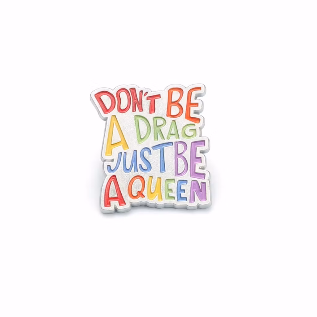 En fargerik og selvsikker pin inspirert av ikonisk drag‑kultur og stoltheten i å være seg selv. “Don’t Be a Drag, Just Be a Queen” er et budskap som hyller frihet, mot og egenverd – og som minner oss på at livet blir bedre når vi tør å skinne. Denne pinnen passer perfekt for alle som ønsker å vise støtte til LHBTQIA+‑miljøet, feire Pride eller bare spre litt ekstra attitude i hverdagen.