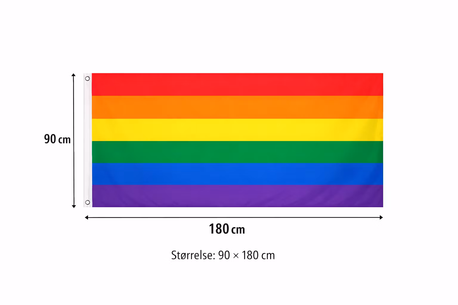 Flagget er laget i lett, værbestandig polyester med forsterkede kanter og metallringer for enkel oppheng. Perfekt til vindu, balkong, festival, kontor eller som bakgrunn i bilder og reels.