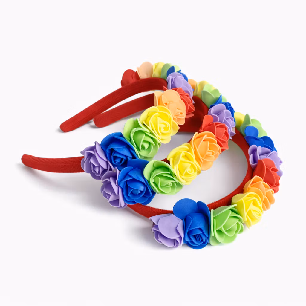 Feir mangfold og stolthet med denne fargerike hårbøylen! Dekorert med myke skumroser i regnbuens farger – fra rødt til lilla – gir den et lekent og elegant uttrykk som passer perfekt til Pride‑feiring, fest eller hverdager med litt ekstra farge.