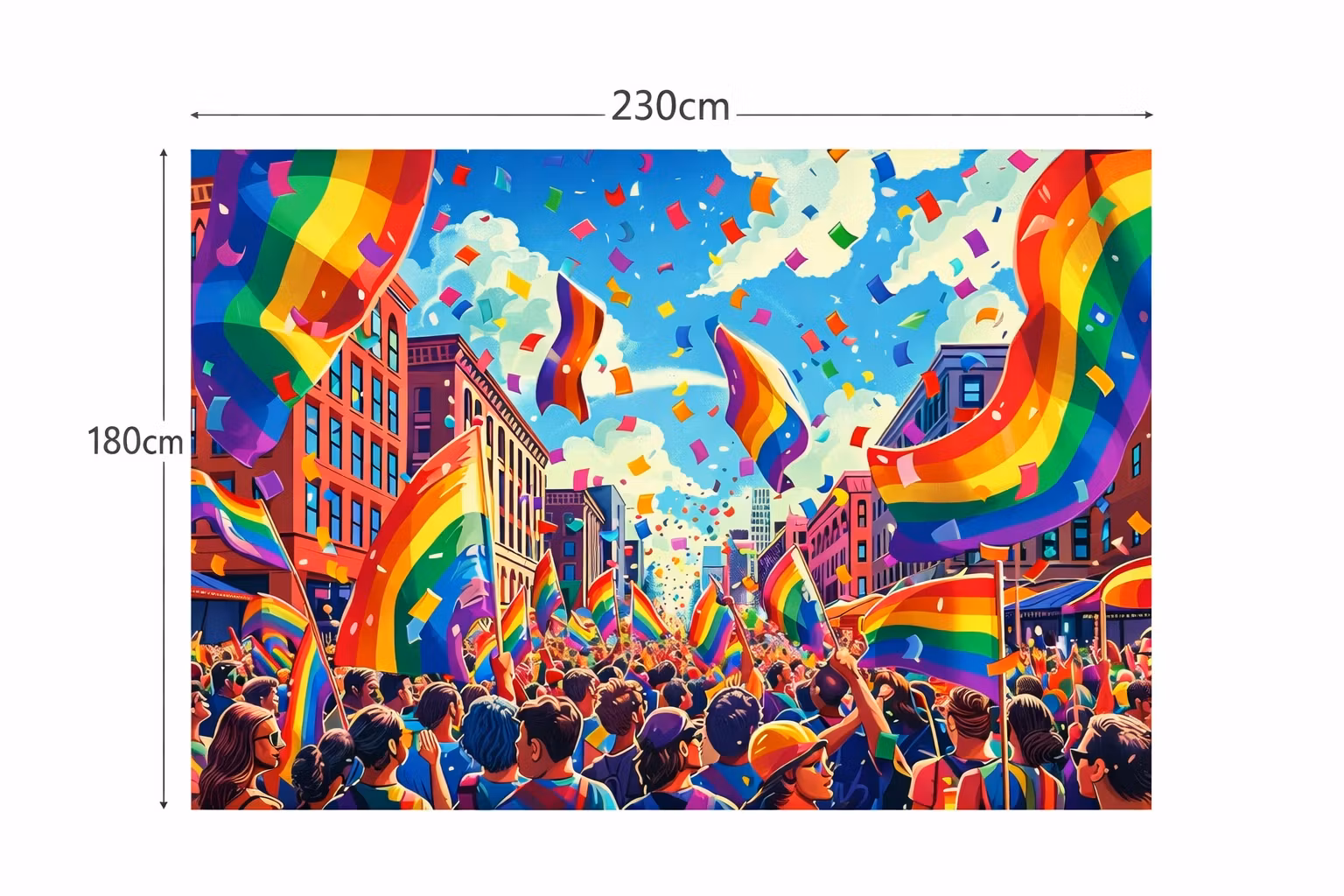 Bruk: Perfekt som bakgrunn til feiring, Pride‑arrangement, fotosone eller som dekor hjemme eller på jobb