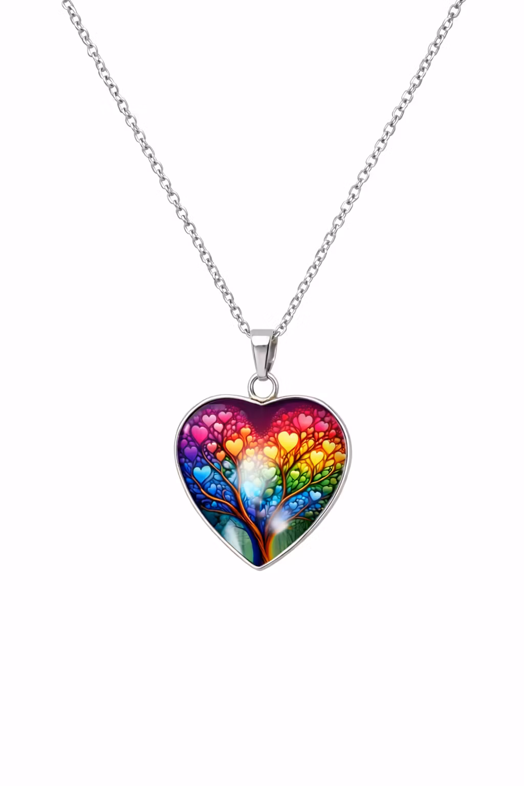 Et symbol på kjærlighet, mangfold og livskraft. Dette hjerteformede smykket kombinerer et fargerikt tre med regnbuefargede hjerteblader – et visuelt uttrykk for både naturens skjønnhet og fellesskapets styrke. Perfekt som gave, statement eller personlig påminnelse om trygghet og tilhørighet.